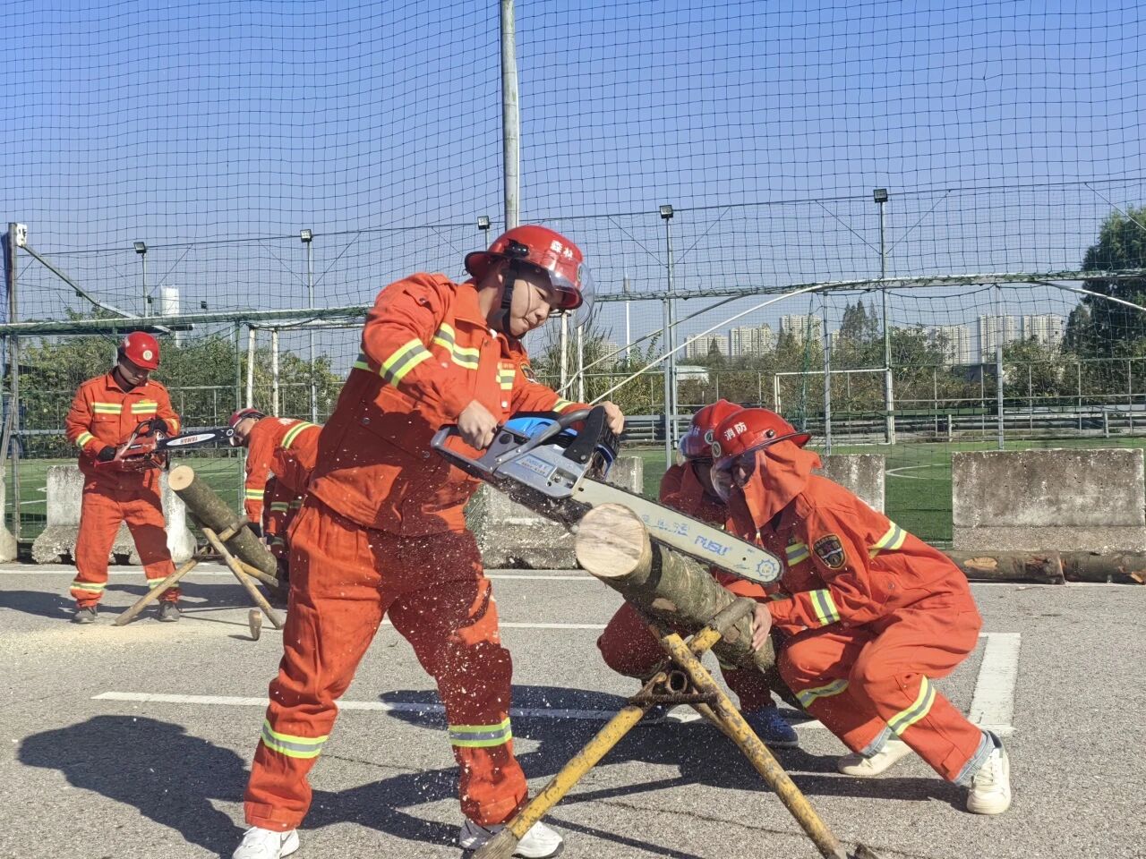 本次比武竞赛紧扣实战需求,设置了灭火器实操、水带连接、模拟救援等多个项目。比赛中,五位选手反应迅速、操作规范,充分展现了良好的消防技能水平和临场应变能力,其专业表现获得了现场裁判和观众的一致认可。
